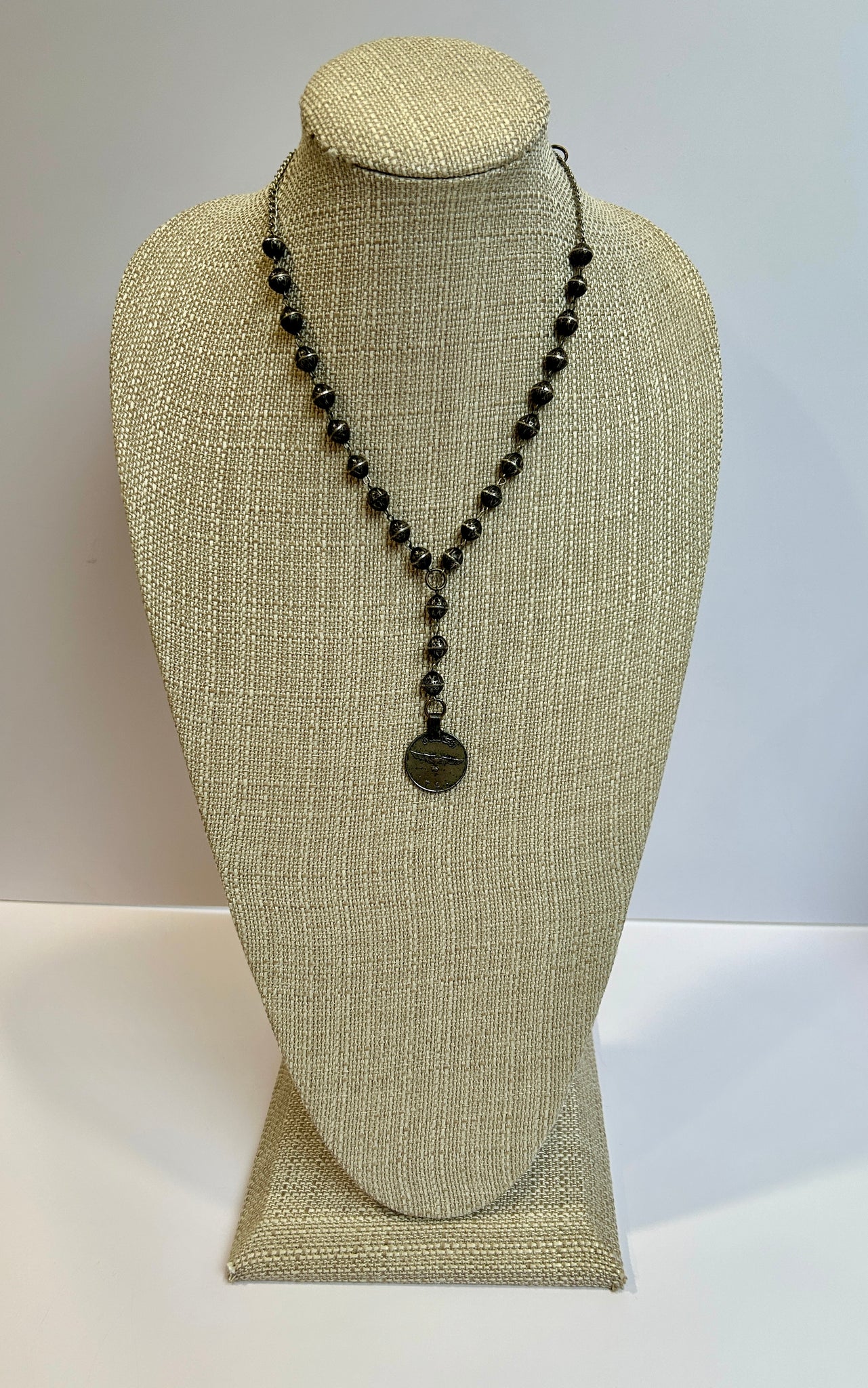 Vintage beaded chain from Paris with ethnic coin Y necklace